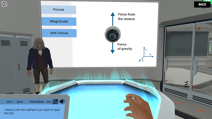 Dr. One, our AI lab assistant, changed a few parts in her engine. These changes affected how she moved and now she needs your help to optimize her flying! In the process, you will determine the center of mass and gravity and learn the basic steps of creating a free-body diagram in a one-dimensional problem.